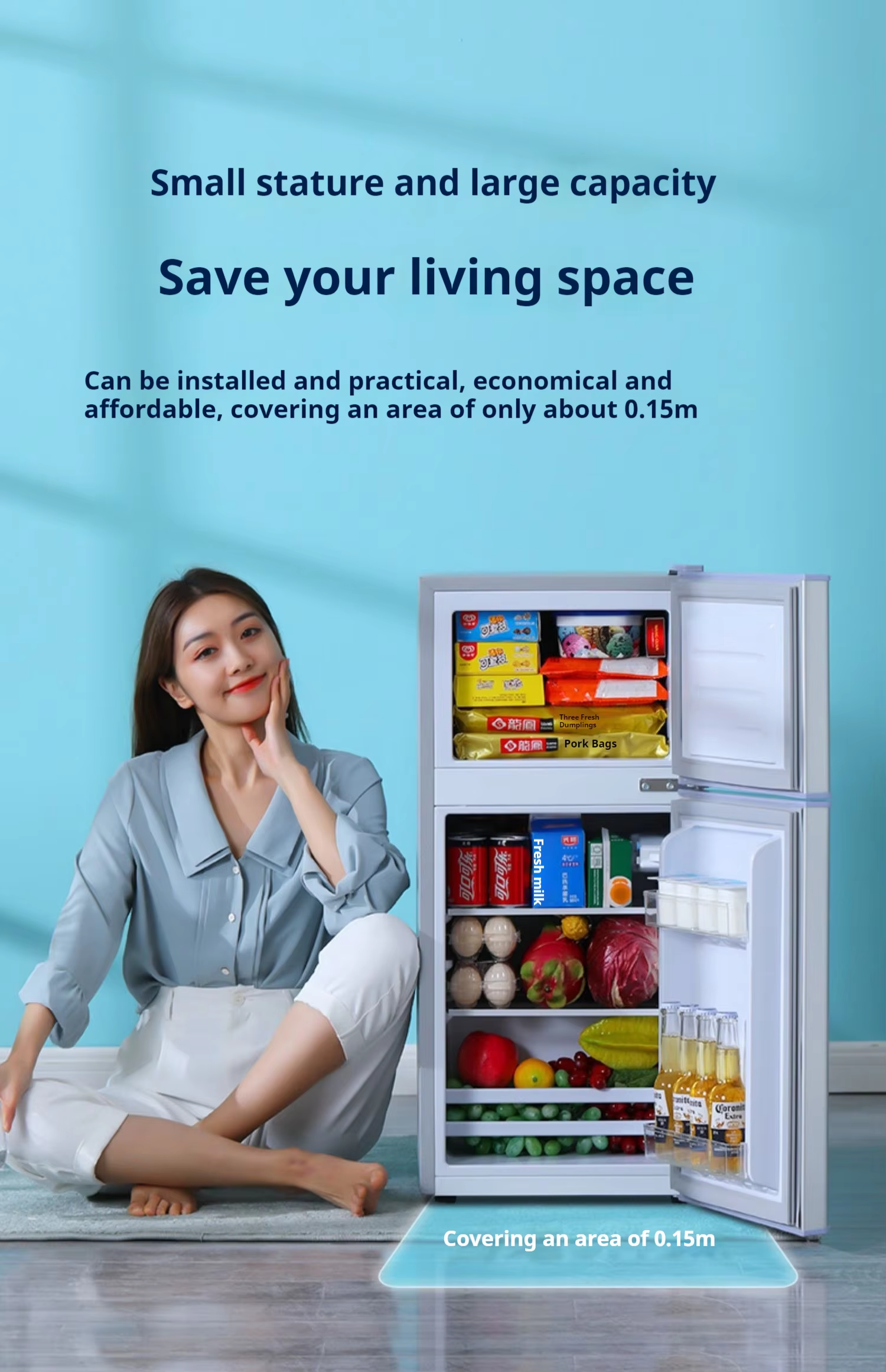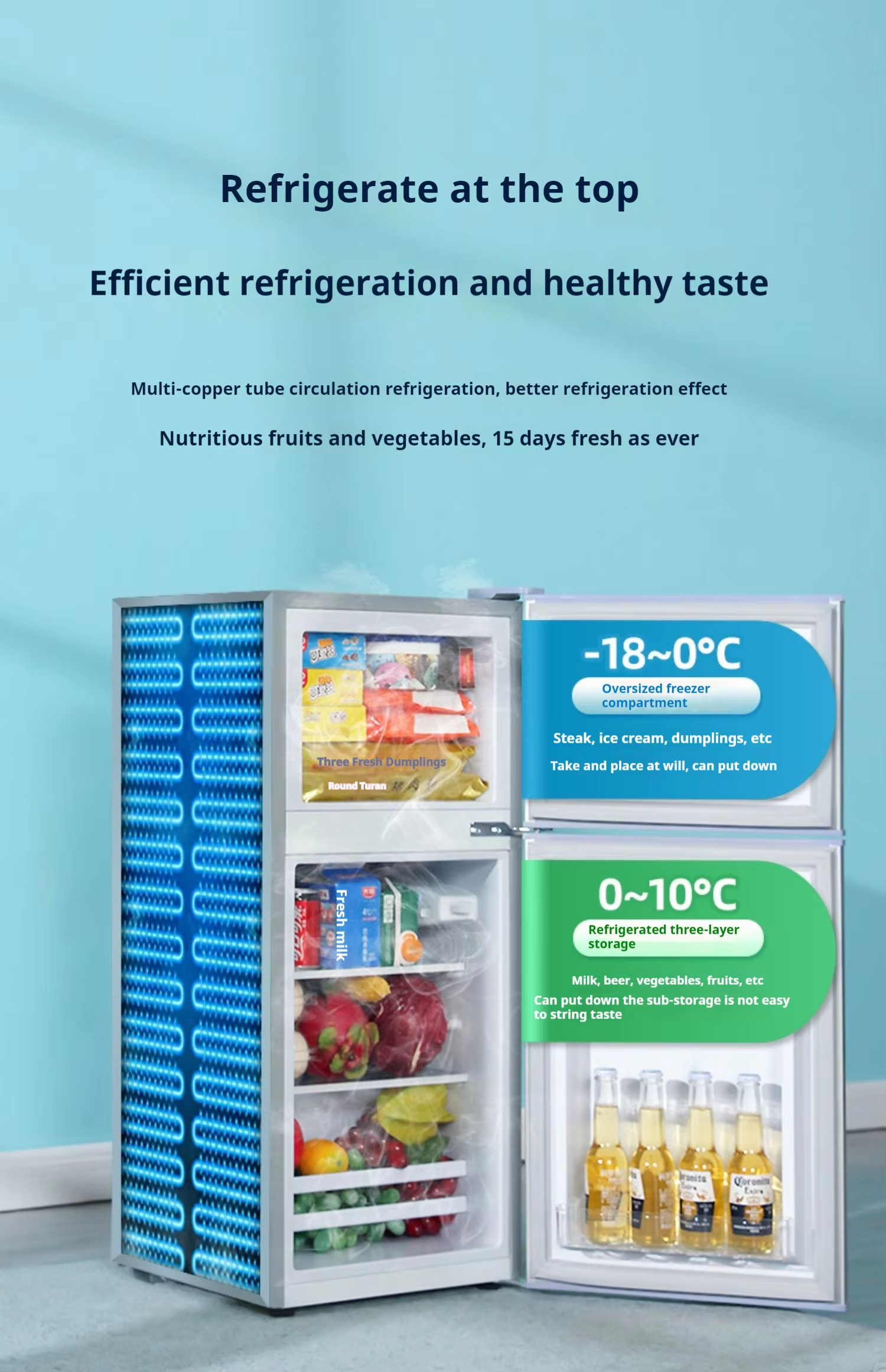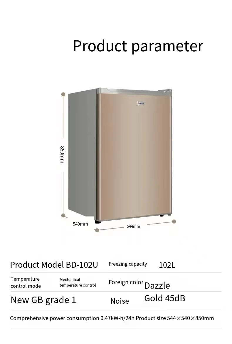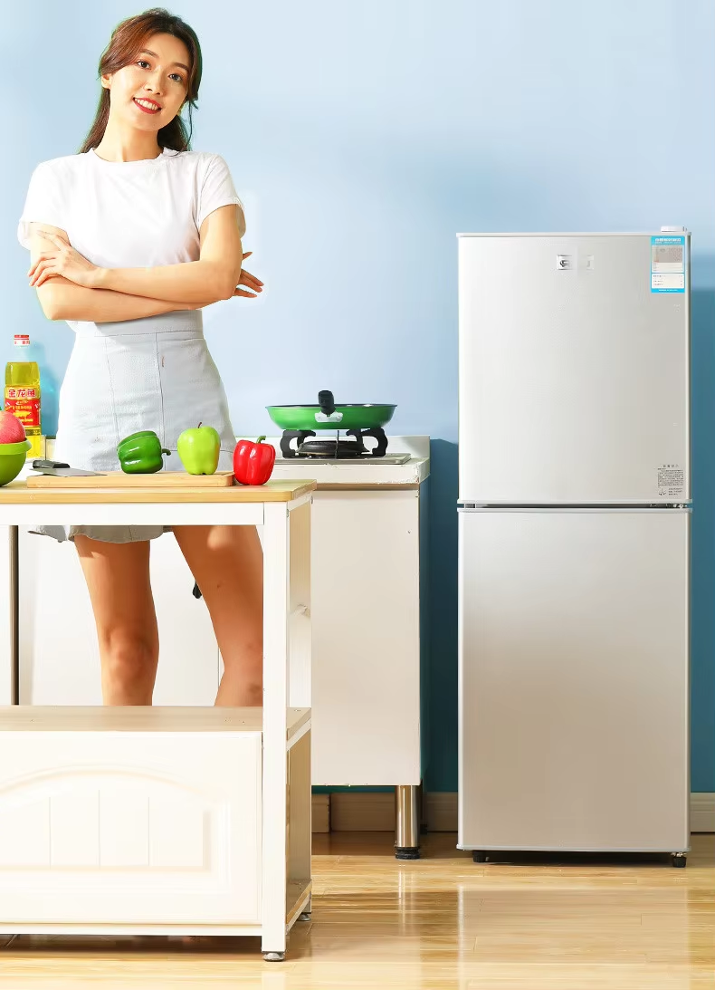 Brand-new 105-128L refrigerator freezer with rapid ice-making function. Home ice maker featuring a drawer-style refrigerator and freezer design. Direct from manufacturer.